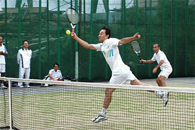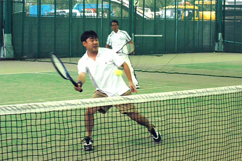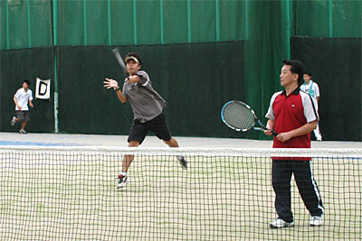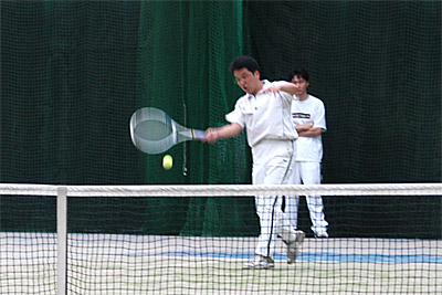 そうそう、理工庭としては初めて「親子」部員が誕生です。吉岡さん親子が OBと現役としてこの親睦会で対戦。最後は、親父が息子に厳しいボレーをきめて ゲームセット。親父の威厳を保ちました。