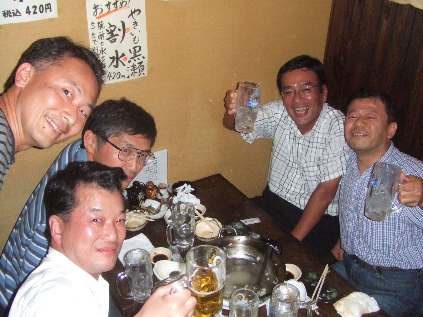 テニスのあとは懇親会。料理に酒にと楽しみました。 なお現役からは、10/8から始まる理工系リーグの2部優勝・1部復帰の宣言が行われました。頑張れ! | |